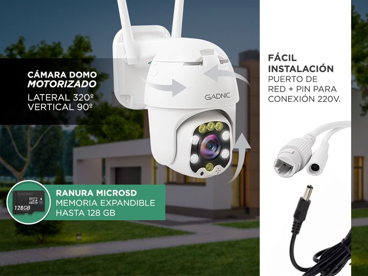 ¡Asegura tu hogar con las Cámaras de Seguridad Gadnic DM300W IP WIFI para Exteriores! Especificaciones Cámara de vídeo Full HD 1080P Resolución: 1920 x 1080P Color y súper claridad Lente de ángulo de 70 Rotación horizontal: 320 Rotación vertical: 90 Visión panorámica de casi 360 Visión nocturna: Sí ...
