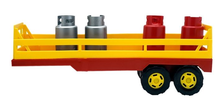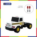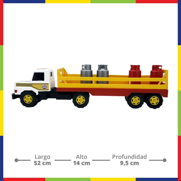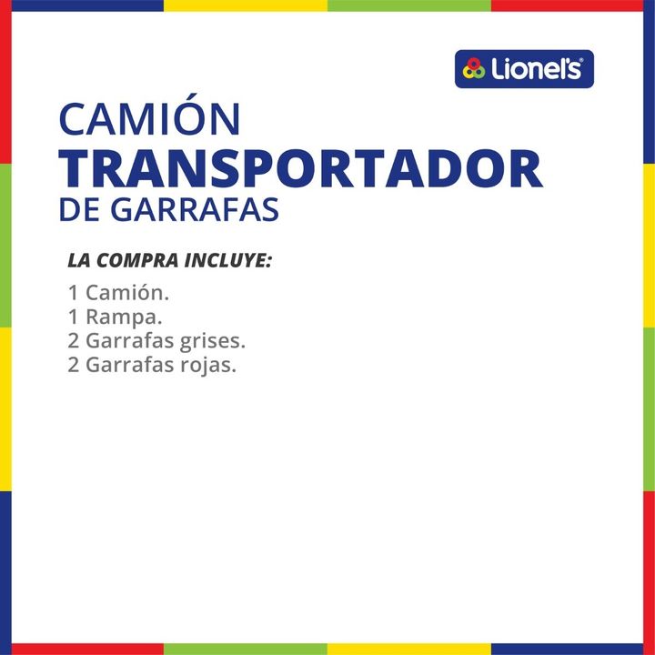 PODEROSO CAMION SUPER TRANSPORTERS LIONEL´S * Camion Transportador Garrafas, incluye 2 garrafas rojas y 2 grises ( 7,5 cm alto) Medida Aproximada : 51 cm largo X 14 cm alto X 9,5 cm ancho * No es recomendable para niños menores de 3 años por tener piezas pequeñas