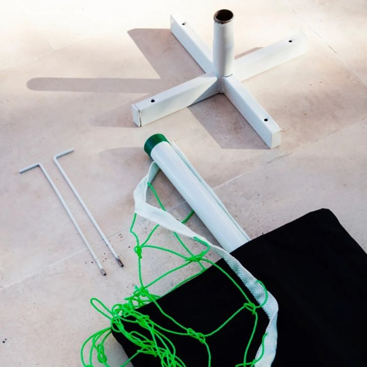 Postes de caño pintado epoxi con base que posibilita juego en césped y cemento. Incluye estuche.