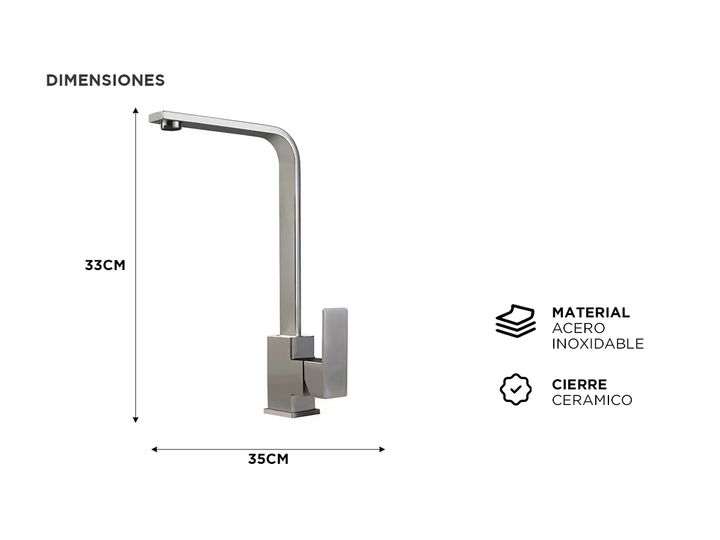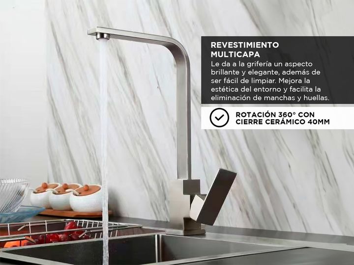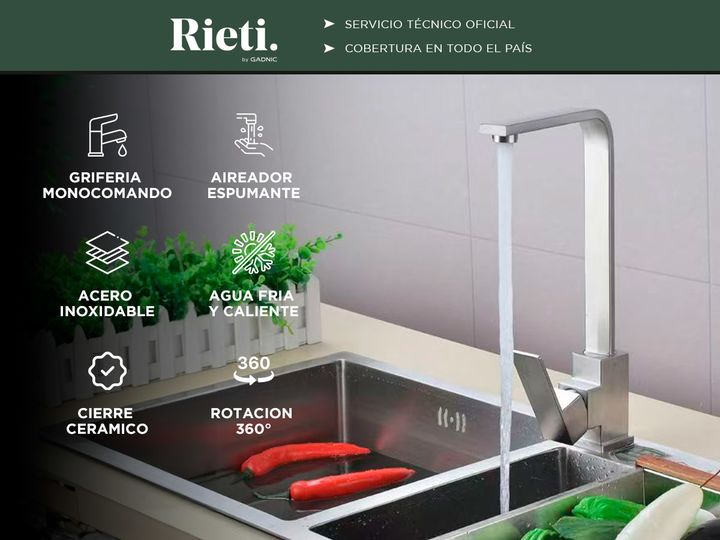 Rieti presenta la nueva Grifería monocomando estilo minimalista: Material: Acero Inoxidable SAE 304 alta resistencia a la corrosión y durabilidad, lo que lo hace ideal para aplicaciones en ambientes húmedos como cocinas y baños. Acabado Pulido Espejo: Le da a la grifería un aspecto brillante y elega...