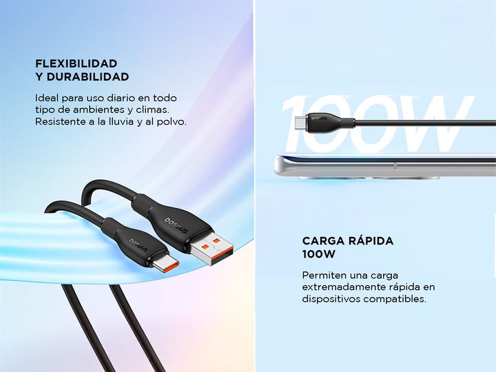 El cable Baseus Pudding Series USB a Tipo -C 100W ofrece una carga rápida y eficiente para tus dispositivos. Con una potencia de hasta 100W, es ideal para smartphones, tablets y laptops, asegurando tiempos de carga reducidos. Su diseño de 1.2 metros en silicona duradera garantiza flexibilidad y resi...
