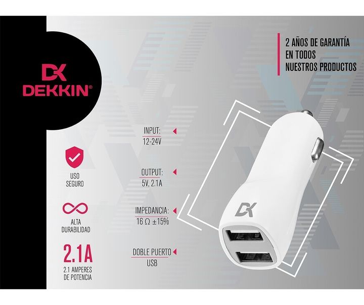 Cargar tus cosas es más fácil con el cargador de auto con doble puerto USB Gracias a la doble entrada USB podes cargar simultaneamente 2 equipos inteligentes, ya no tenes que elegir qué cargar primero. ------------------------------------------------------------- CARACTERÍSTICAS: - Doble puerto de e...