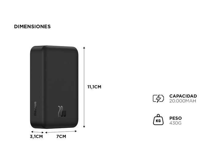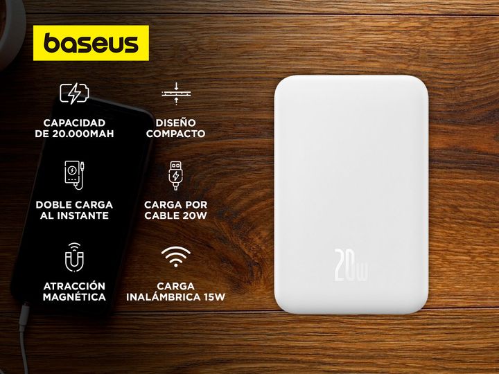 Descubrí el Power Bank Baseus, una solución de carga potente y versátil. Con su capacidad de 20000mAh y la innovadora atracción magnética para carga, este power bank ofrece carga inalámbrica de hasta 15W y carga por cable de 20W en un solo dispositivo. Su pantalla LED te mantiene informado sobre el ...