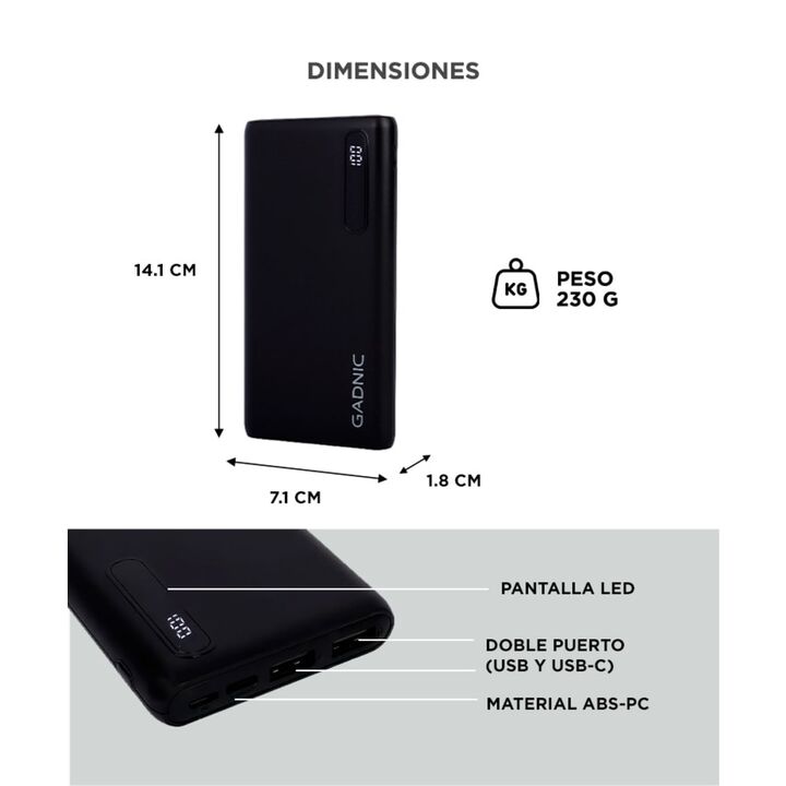 El BC-19 deja claro lo que es un banco de carga insignia. Con 15.000 mAh, esta bestia ha sido domada con una pantalla digital de alta precisión que le permite conocer con exactitud la energía restante. Viene con un puerto USB, otro MICRO-USB y, por último, un USB Type C (únicamente para carga del Po...