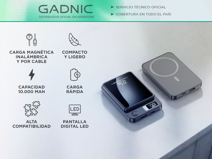 El Cargador Portátil Gadnic Powerbank BC84846 es la solución perfecta para mantener tus dispositivos cargados en cualquier momento y lugar. Con una capacidad de 10,000mAh, este cargador portátil es ideal para personas activas, profesionales, estudiantes y aventureros que buscan un dispositivo confia...