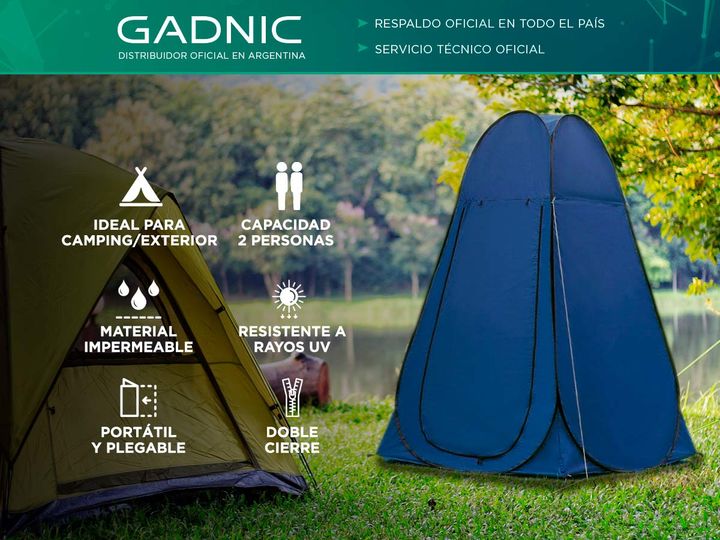 La Tienda Gadnic es una solución innovadora y versátil que te ofrece privacidad en cualquier lugar. Ideal para múltiples usos, desde ducha y baño portátil hasta como carpa tradicional, esta tienda está diseñada para brindar comodidad y practicidad en cualquier entorno. Con capacidad para 1 a 2 perso...