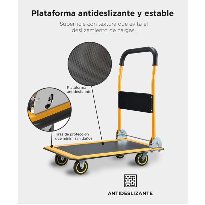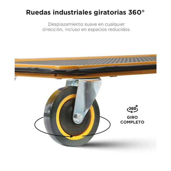 Estructura reforzada para transporte exigente El carro plataforma tipo dolly esta diseñado para el traslado seguro de cargas pesadas en entornos industriales comerciales y logisticos. Su estructura de acero reforzado brinda alta resistencia mecanica y estabilidad durante el uso intensivo diario. Es ...