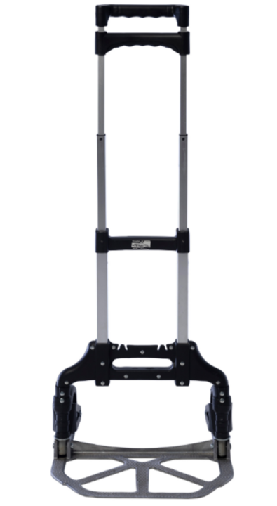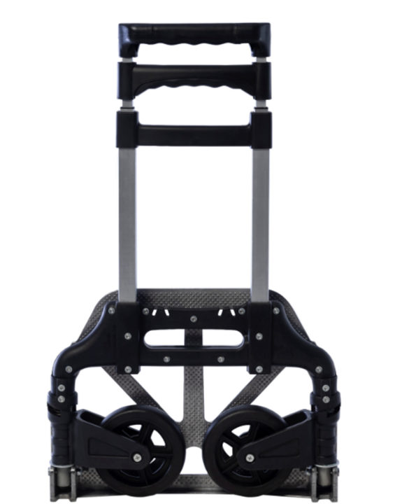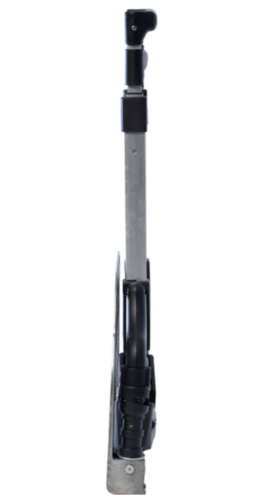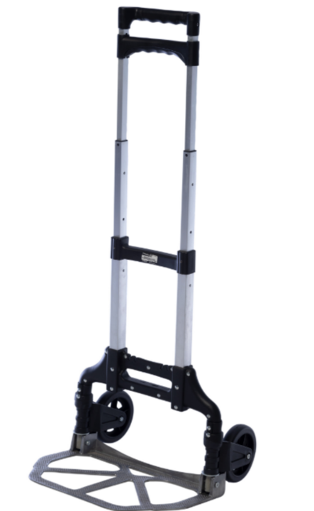 Capacidad máx. De carga: 70 Kgs. • Tamaño plegado: 5,5 x 38 x 63 cm • Tamaño extendido: 41 x 38 x 99 cm • Altura ajustable: 90-100 cm • Tamaño de plataforma de aluminio: 38.5 x 28 cm • Diámetro de las ruedas: 12,5 cm • Material: aluminio • Peso: 3,10 Kg