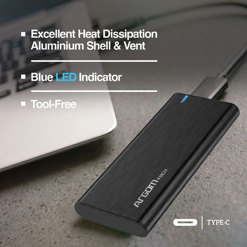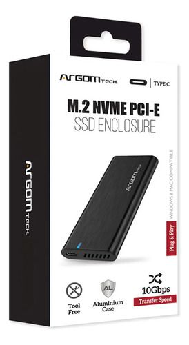 Carcasa Argomtech SSD PCI-E NVME M.2 tipo C ARG-AC-1038 - A00581 Coloque su disco duro SSD PCI-E con clave M interna en este ligero estuche de aluminio con interfaz tipo C y transfórmela en una solución de disco duro externo ultrarrápido portátil con velocidades de transferencia de datos de hasta 10...