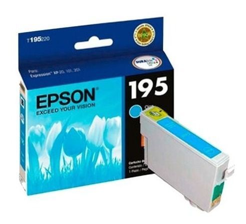 Cartucho de Tinta Epson T195 Cian - T195220-AL Las tintas DURABrite Ultra ofrecen una calidad de imagen muy superior y además son resistentes al agua, la luz y los borrones, para así garantizar un color parejo y duradero. Son ideales para impresión en ambos lados del papel ya que las tintas DURABrit...