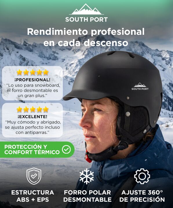 PROTECCION ABS MAS EPS DE ALTO IMPACTO El casco Acon Southport esta construido con carcasa exterior de ABS resistente y nucleo interior de EPS de absorcion de impactos. Esta combinacion brinda proteccion confiable frente a golpes durante la practica de ski o snowboard. Los materiales utilizados son ...