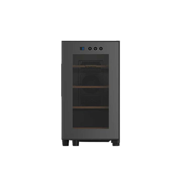 La cava de vinos Vondom T8 conserva hasta 8 botellas a una temperatura ajustable entre 8° y 18°C, ideal para mantener tus vinos en condiciones óptimas. Cuenta con enfriamiento termoeléctrico, luz LED y panel táctil para un manejo sencillo y preciso. Compacta y funcional, perfecta para espacios peque...