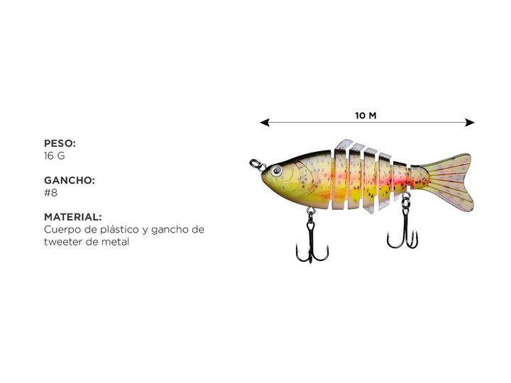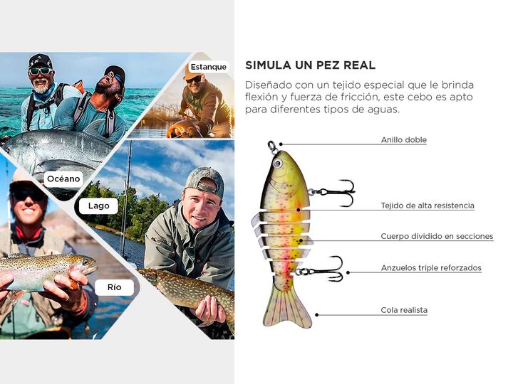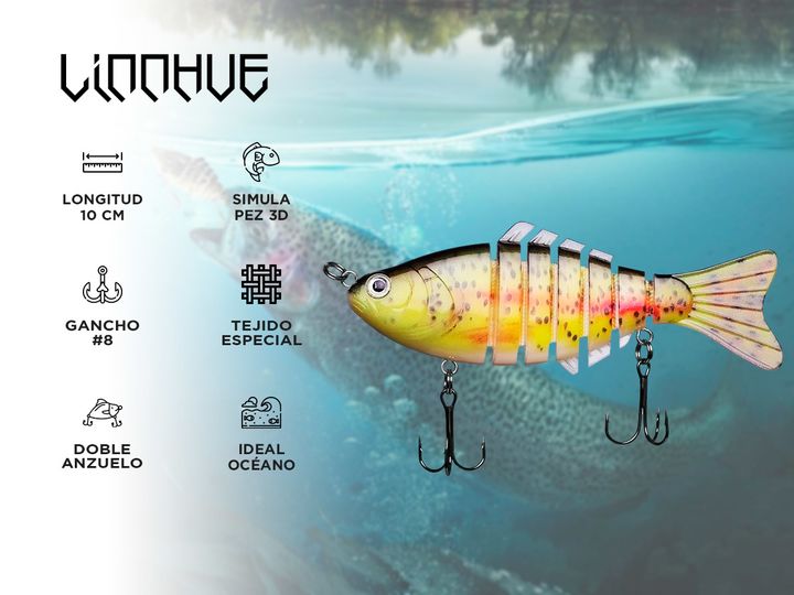 ¡Nuevo cebo de pesca Linnhue! Este cebo de pesca simula un pez en 3d. Diseñado con doble anillo dividido plano, fortalece la fuerza del plano y el el efecto anticorrosión es excelente. Su tejido especial fuerte fuerza de tracción, siendo más fácil para hacer frente a los gigantes, es súper flexible ...