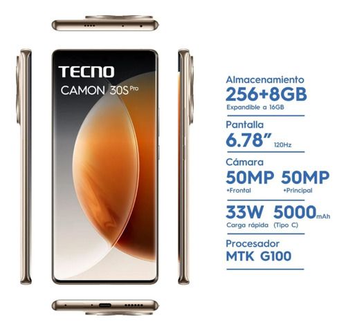 GENERALES: Modelo: CLA6 Color: Dorado Garantía: 12 meses Dimensiones (An x Al x Prof - mm): 164.64 x 74.64 x 7.75 Peso: 180 g ALMACENAMIENTO Y PROCESADOR: Memoria Interna: 256 GB Sistema Operativo: Android 14 Modelo del Procesador: MTK Helio G100 Velocidad del Procesador: 2.2 GHz Cantidad de Núcleos...