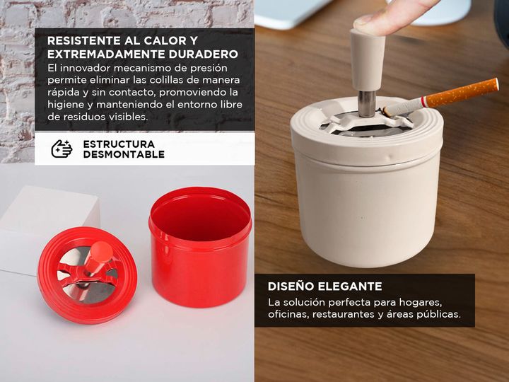 Mantené tus espacios limpios y libres de colillas de cigarrillos con el Cenicero Tragacolillas a Presión, la solución perfecta para hogares, oficinas, restaurantes y áreas públicas. Este cenicero combina funcionalidad, durabilidad y un diseño elegante para ofrecerte una experiencia superior. Fabrica...