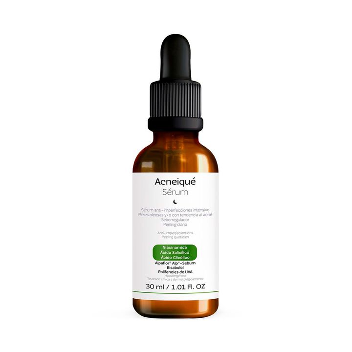 Acneiqué Sérum anti-imperfecciones intensivo, es un tratamiento para atenuar marcas, poros visibles y puntos blancos y negros. Seborregulador, peeling diario y antioxidante. Una fórmula que purifica y mejora la textura de la piel e hidrata. Indicado para pieles oleosas y como coadyuvante en los trat...
