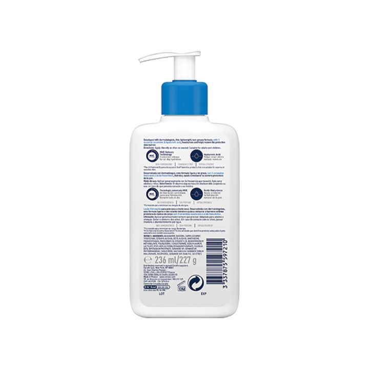 Descripción. La loción hidratante restaura y protege la barrera natural de la piel. Con una textura ultra ligera y potenciando por su formula con 3 ceramidas esenciales, mantiene la piel del rostro y cuerpo hidratada por 24h. Desarrollado con dermatólogos, la loción hidratante con textura ultra lige...