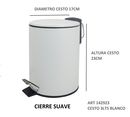 HOGAR ACTUAL CESTO DE RESIDUOS ACERO BLANCO 3 LTS CS SKU: 142923-B Este elegante Cesto de Residuos Tacho Basura de 3 litros es una excelente adición a cualquier hogar. Fabricado por la reconocida marca Hogar Actual, este cesto de basura de color blanco tiene un acabado mate que le da un aspecto sofi...