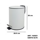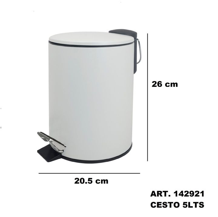 HOGAR ACTUAL CESTO DE RESIDUOS ACERO BLANCO 5 LTS CS SKU: 142921-B Cesto de 5 litros acero! Acabado Blanco ART 142921-B Material: Acero pintado Acabado: Mate Medidas : Alto 26cm diámetro 20.5cm Contiene un recipiente interior desmontable de plástico con manija.