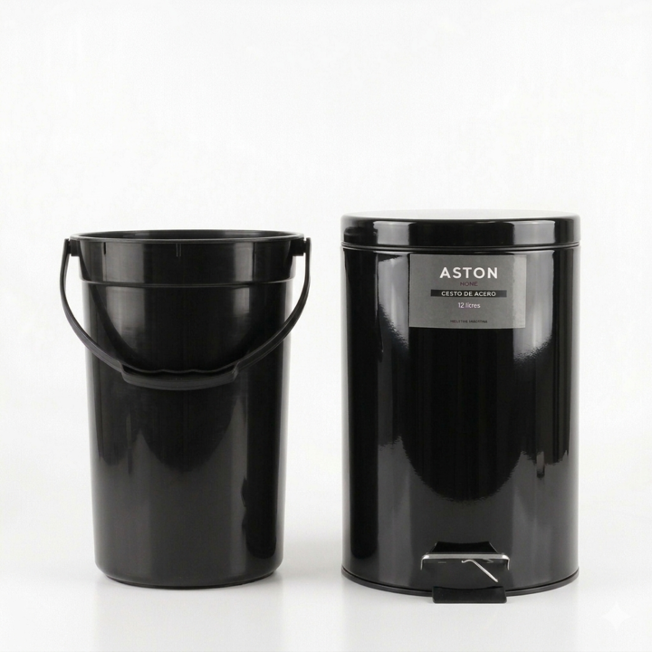Cesto de Acero Inoxidable de 12 lts con pedal Medidas : 40 cms de alto Diametro : 24 cms Tacho plastico extraible Pedal Industria ARGENTINA Características Principales: Acabado Premium: Cuerpo de acero con recubrimiento en negro brillante que facilita la limpieza y aporta un brillo de espejo durader...