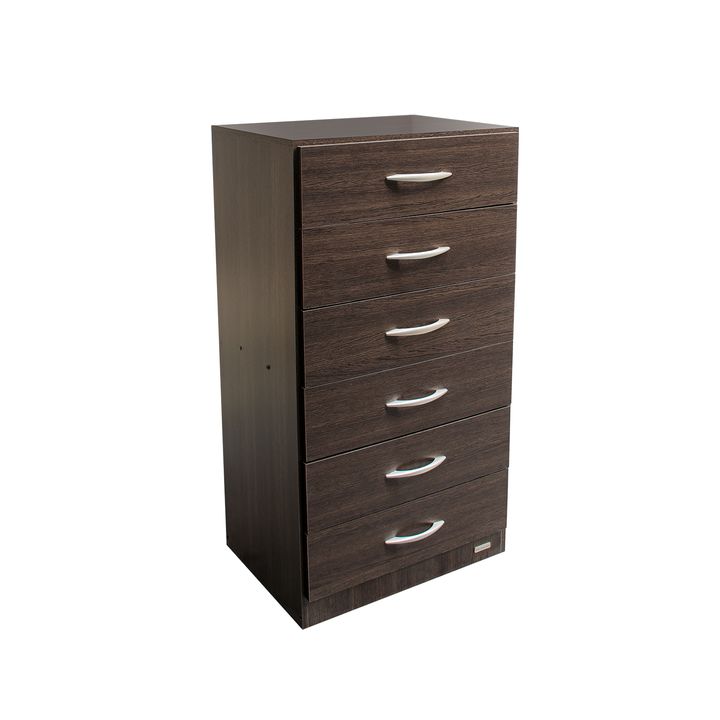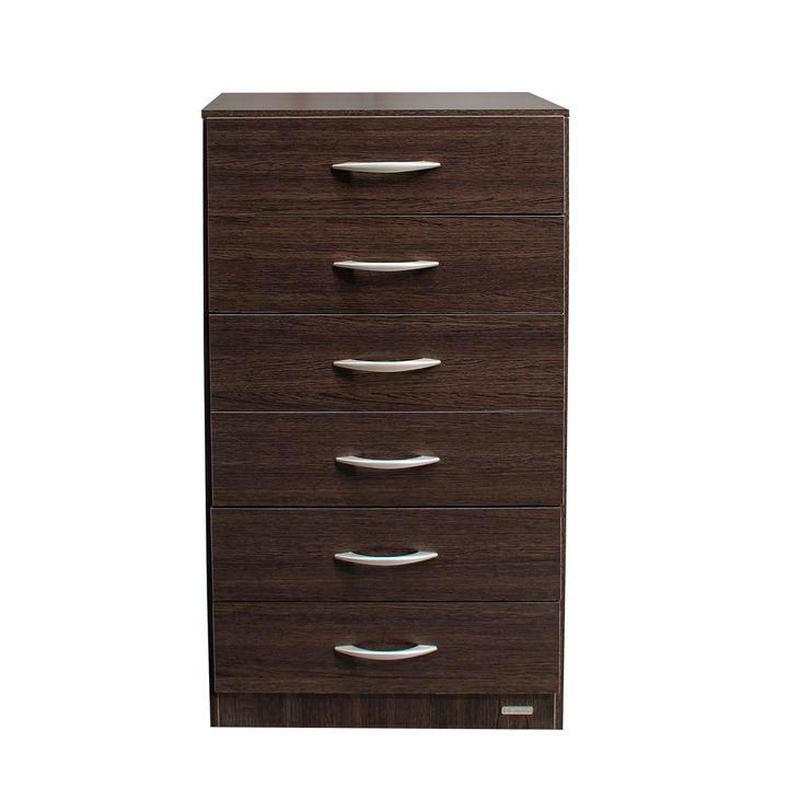 Chiffonier de melamina. Seis cajones con correderas metálicas. Tiradores de Pvc. Color Tabaco Medidas: Ancho: 0.62 mts. Alto: 1.16 mts. Profundidad: 0.47 mts.