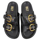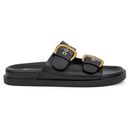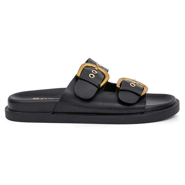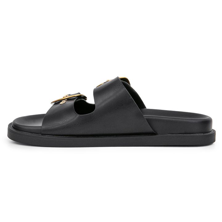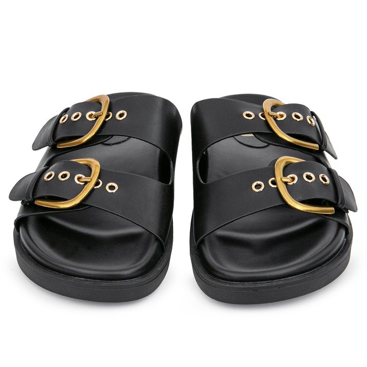 La Chinela Ciria es el mix perfecto entre estilo y comodidad. Confeccionada en 100% cuero y base de goma antideslizante, ofrece un andar seguro y liviano. Su diseño chatita con doble hebilla dorada le aporta un toque moderno y sofisticado, ideal para sumar un brillo sutil a los looks casuales de tod...