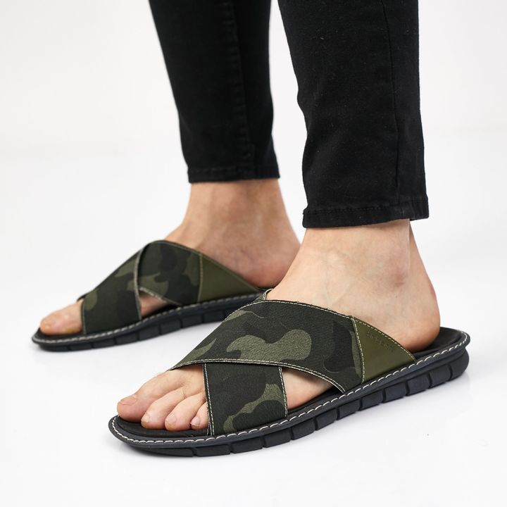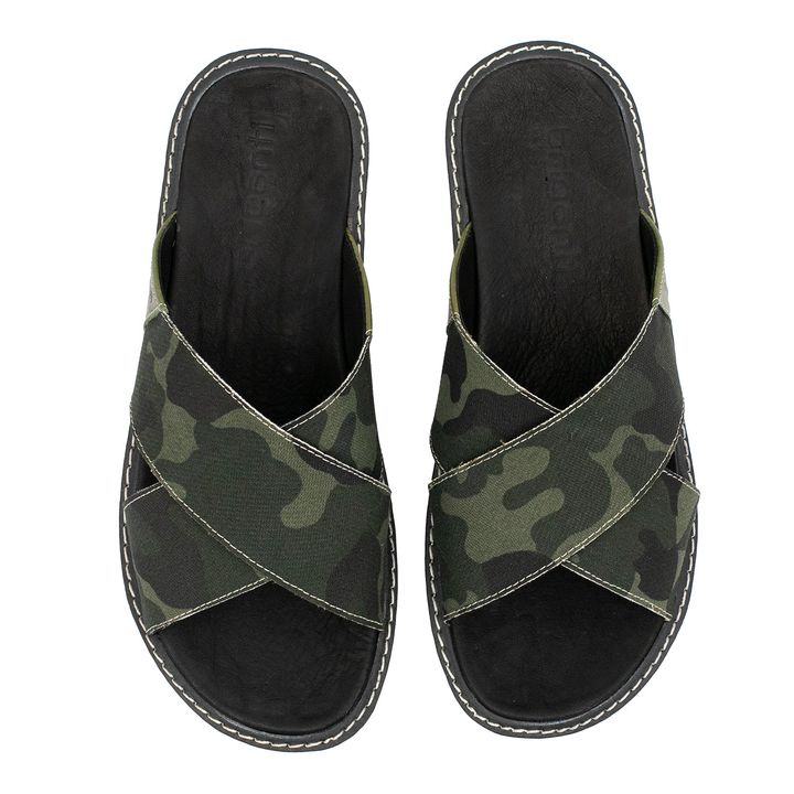 Chinelas de hombre fabricadas con tela de primera calidad. Este modelo invita a salir de lo clásico gracias a su diseño combinado con tela con camuflado militar. Mogara es una opción canchera y cómoda para el día a día. - Base: Goma - Material Interno: Cuero - Material Externo: Tela - Articulo: HCCH...