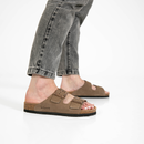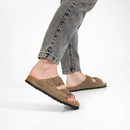 La Chinela Oliva combina comodidad y estilo en un diseño versátil y actual. Confeccionada en 100% cuero, cuenta con doble hebilla y base de goma antideslizante que garantiza un andar firme. Su estilo birk y su aire casual la convierten en la opción ideal para un look relajado pero con carácter. - Ba...
