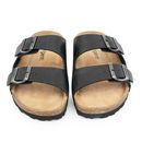La Chinela Tarik combina practicidad y estilo en un diseño clásico tipo birk. Confeccionada en 100% cuero, cuenta con base de goma antideslizante y doble hebilla que asegura un calce firme y cómodo. Ideal para quienes buscan frescura y carácter en un solo modelo. - Base: Goma - Material Interno: Cue...