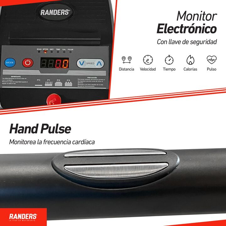 Monitor: Tiempo, Velocidad, Distancia, Calorías, Pulso