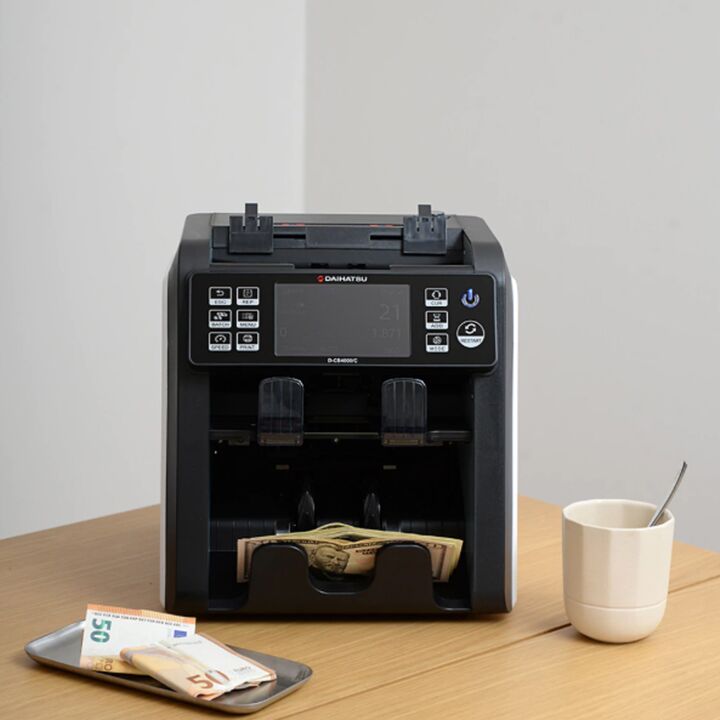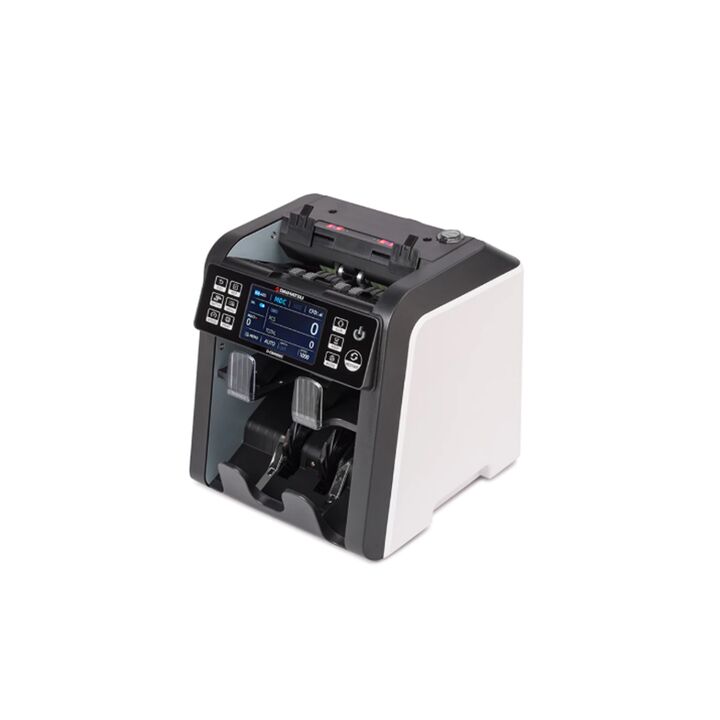 Clasificadora de billetes con lectura, conteo y detección de denominaciones UV/MG/IR/SDC/MDC. Detección automática de moneda (ARS-USD-EUR y más). Velocidad: 1200 billetes/min. Capacidad de carga: 500 billetes. Pantalla táctil (TFT 4.5 pulgadas) DOBLE BANDEJA DE DESCARGA. Especificaciones - Lectura, ...