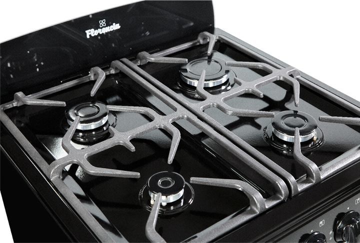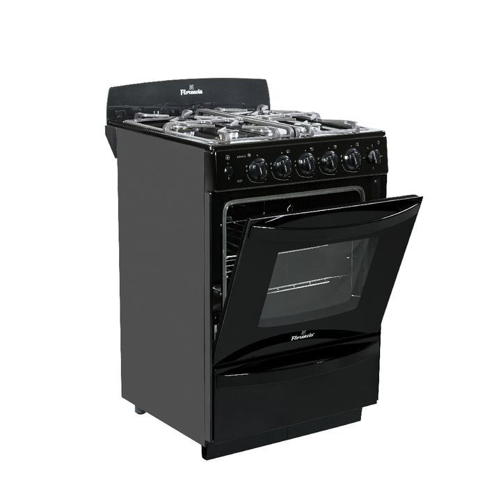 Cocina familiar negra con rejillas de fundicion - 4 hornallas - caracteristicas - luz en el horno mir como se va cocinando todo - encendido a una sola mano encender las hornallas y horno nunca fue tan facil - rejillas de fundicion con un excelente diseno estas rejillas de fundicion le dan un toque d...
