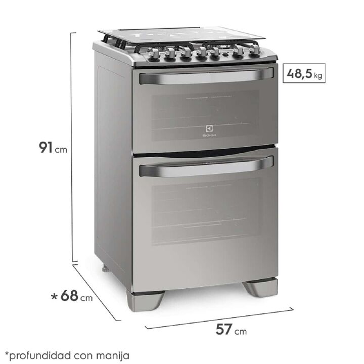 Doble Horno La COCINA DOBLE HORNO ELECTROLUX M-GAS INOX 56DXQ 4 HORNALLAS ha llegado para satisfacer el deseo de aquellos que demandan calidad y eficiencia en la preparación de sus alimentos. Con dos hornos independientes, uno eléctrico y uno a gas, sus comidas se pueden preparar simultáneamente y c...