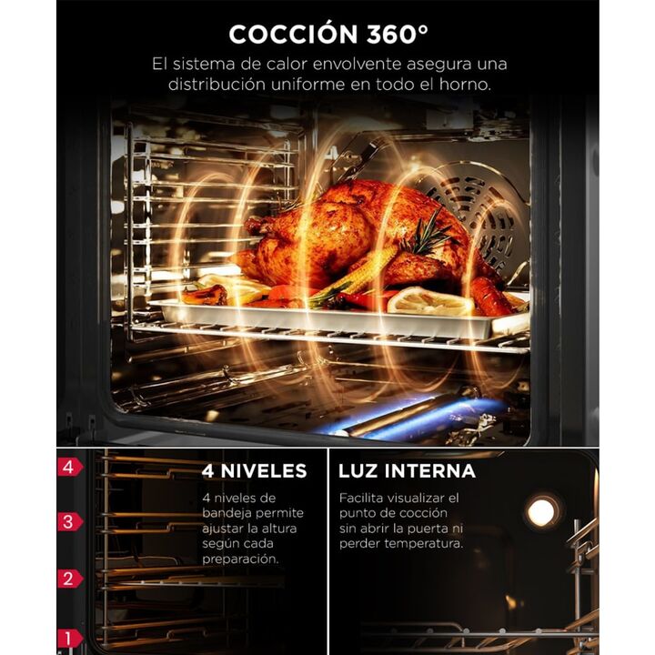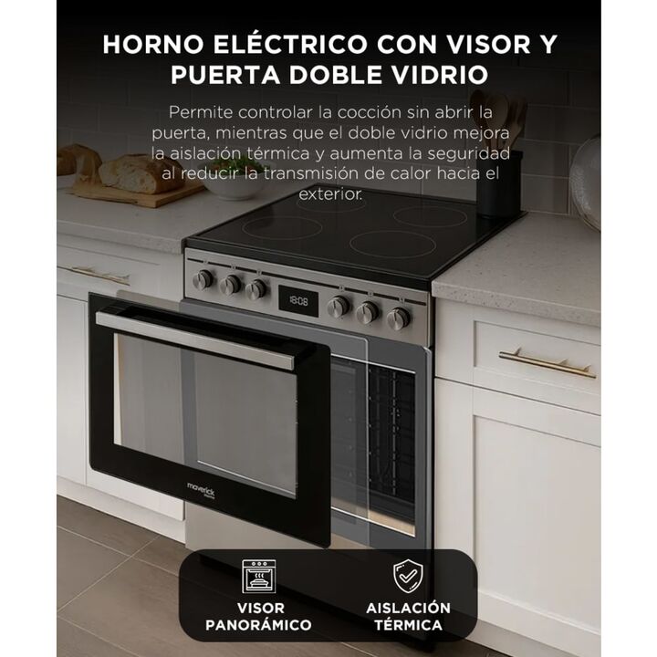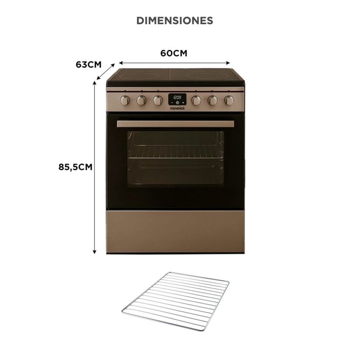 Cocción profesional todos los días: La cocina eléctrica Maverick 60 cm combina un diseño moderno con un rendimiento superior. Su anafe vitrocerámico y su horno con convección permiten lograr resultados parejos y consistentes en cada preparación, desde recetas simples hasta platos gourmet. Anafe vitr...