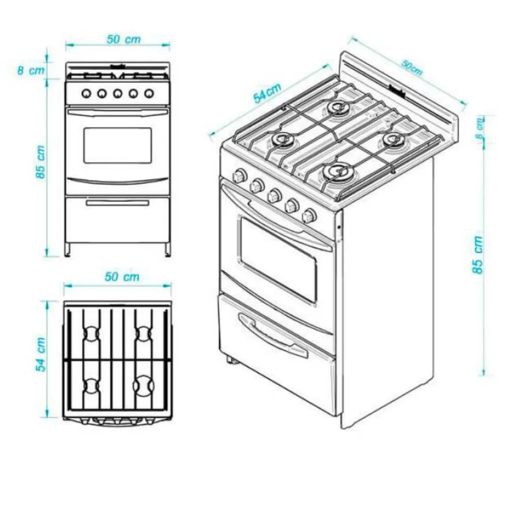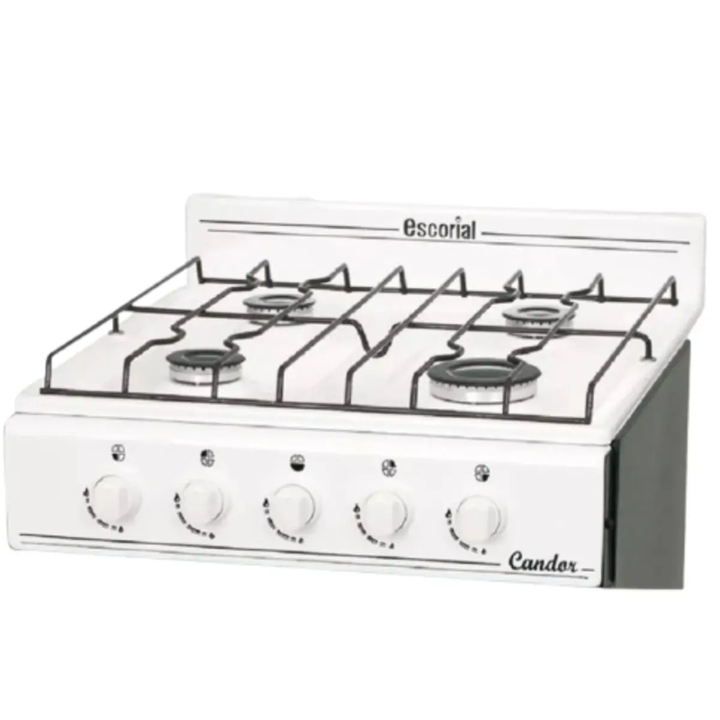 La cocina Escorial CANDOR S2 GE totalmente enlozada en polvo electrostático. Tiene tres hornallas medianas y una grande. Con plancha, puerta de horno, puerta parrilla esmaltado color blanco; puerta de horno con bisagra desmontable, puerta parrilla rebatible, perillas de plástico inyectado, manija de...
