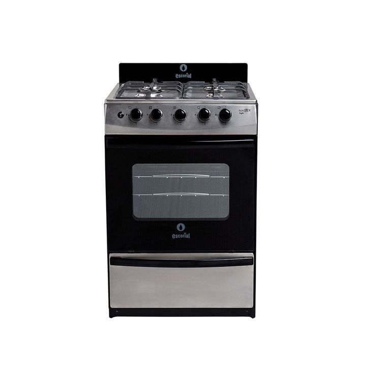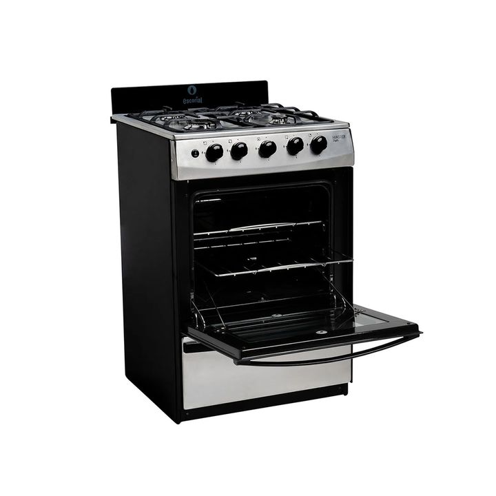 - Acero inoxidable con tapa de horno de vidrio negro y laterales negros.