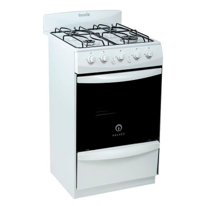 Cocina Escorial Palace Cristal LX S2 Gas Licuado - PALACECRLXS2GL Diseño La cocina Escorial Palace Black posee un diseño clásico en color negro que cuenta con cuatro hornallas; horno y cajón parrilla independiente. Dispone de 1 quemador grande y 3 medianas. Este modelo se encuentra preparado para ga...