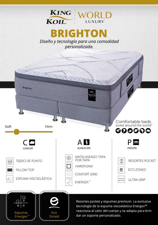 Colchon King Koil Brighton 1 Plaza y Media 90x190cm Resortes Pocket Europillow Viscoelastico
