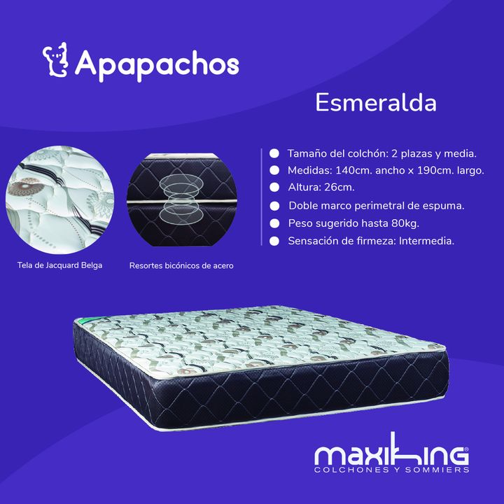 Colchon Maxiking Esmeralda 2 Plazas y Media 140x190x26cm de Resortes Bonnell Tela de Jackard