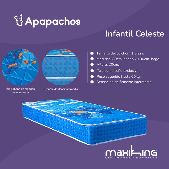 40% OFFColchon Maxiking Infantil 1 Plaza 80x190x20cm de Espuma Tela Acolchada Diseño Futbolero Azul y Amarillo-Apapachos-