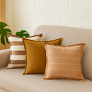 Combo 3 almohadones Tusor 40x40 - Diseño Ocre, beige rayas finas y gruesas