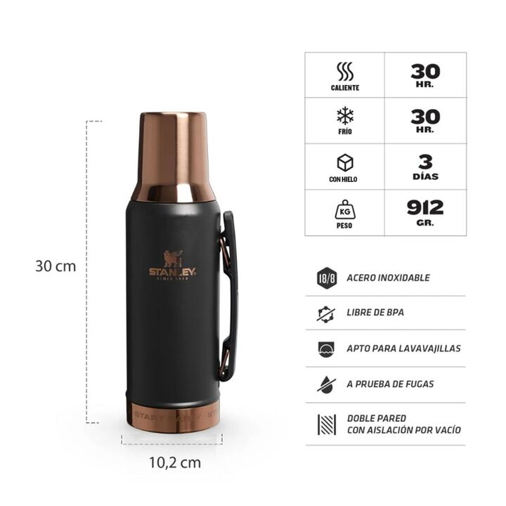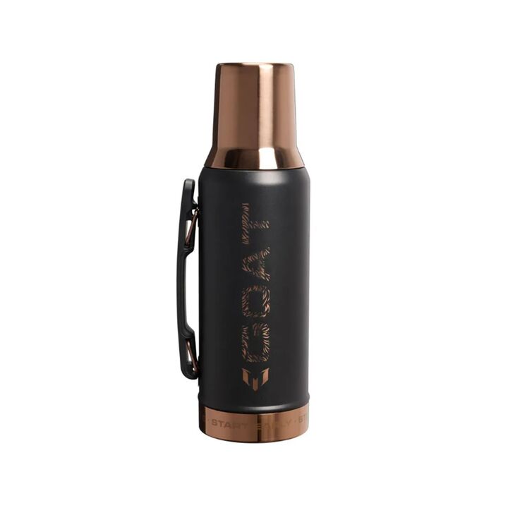 Start early. Stay late. Ese es el secreto. Esta colección Messi x Stanley 1913 en color negro Black Pebble viene con detalles en color oro rosado pulido que celebran un legado construido a base de años de trabajo duro y dedicación, y, de vez en cuando, un poco de magia. El Termo Mate System de 1,2 l...