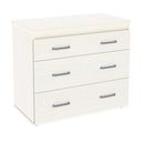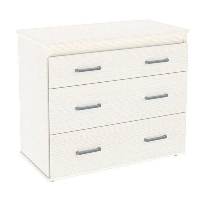 Cómoda con 3 cajones . El primero de los cajones con división interna, y dos cajones más altos de mayor capacidad. 100% Melamina de 15 mm. Filos de melamina. Correderas metálicas. Tiradores plásticos. Cuatro patas. Color Fineline Crema. Medidas: Alto: 0.81 mts. Ancho: 1.00 mts. Profundidad: 0.45 mts...