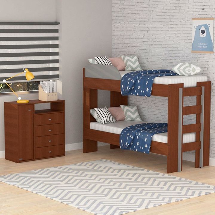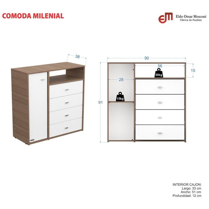 CÓMODA CAJONERO MOSCONI 4 CAJONES 1 PUERTA MELAMINA MILENIAL 56805 COLOR TABACO