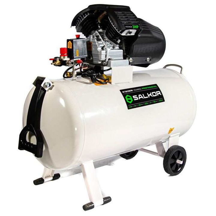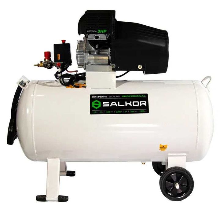Descripción Producto: Compresor De Aire Monofásico Salkor Profesional Modelo: CE.710 Ventajas: Fácil regulación de la presión de salida de aire equipado con doble manómetro y regulador. Alta eficiencia accionamiento directo, rápida recuperación. Larga vida útil cilindros de hierro fundido. Gran capa...