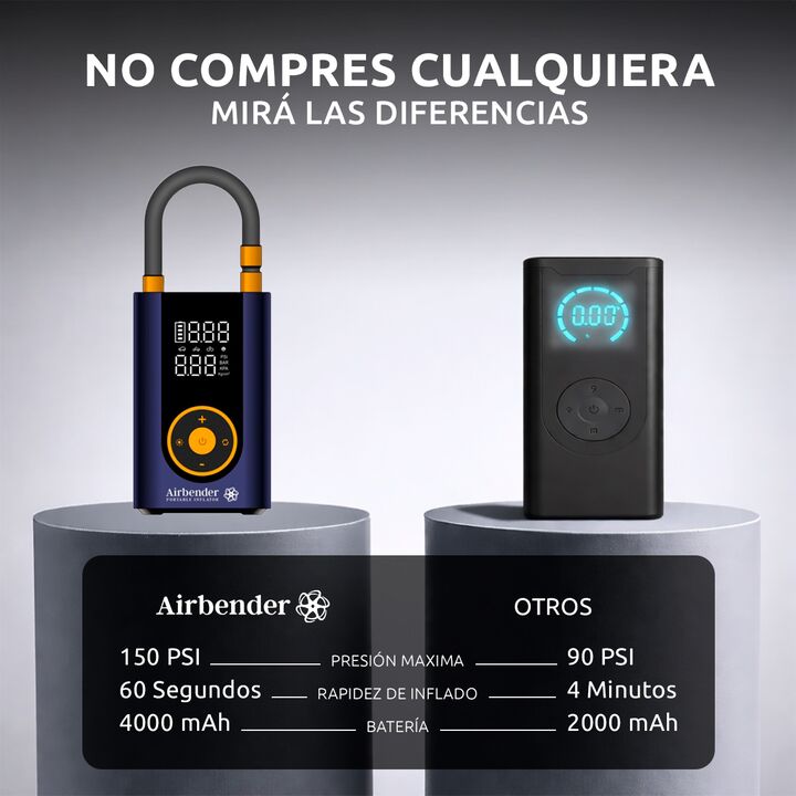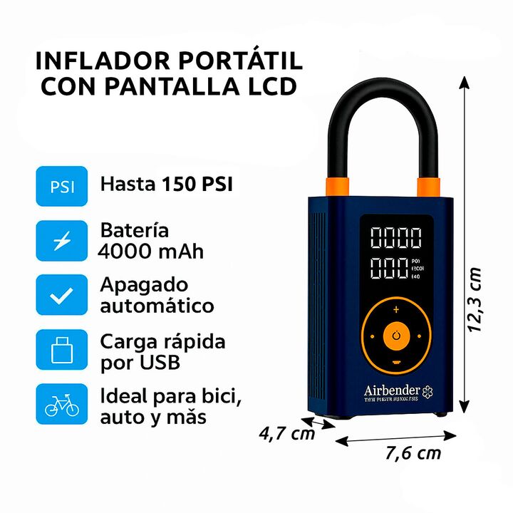 El inflador portable Airbender es ese aliado que te da tranquilidad cuando más lo necesitás. Un neumático bajo antes de salir, la bici lista para el fin de semana o una pelota que perdió presión… lo resolvés en minutos y sin depender de nadie. Compacto y totalmente portátil, te acompaña en el auto o...