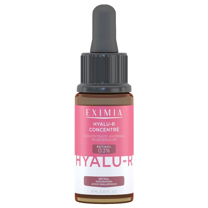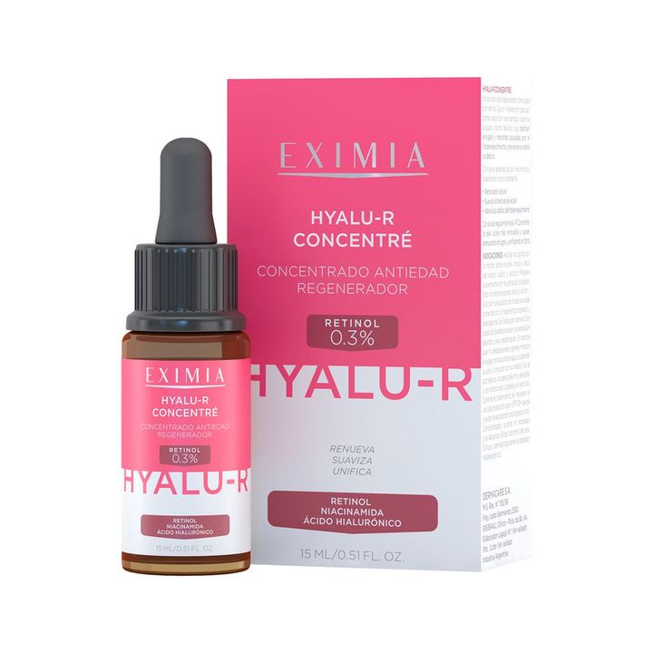HYALU-R CONCENTRADO Un concentrado regenerador, formulado con retinol (puro + liberacion gradual) combinado con niacinamida, vitamina e pura y ácido ferúlico, que atenúan arrugas y manchas causadas por el fotoenvejecimiento y previenen el estrés oxidativo. Contiene, además, ácido hialurónico y d-pan...