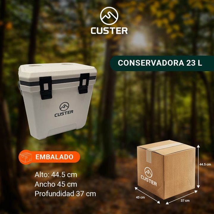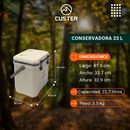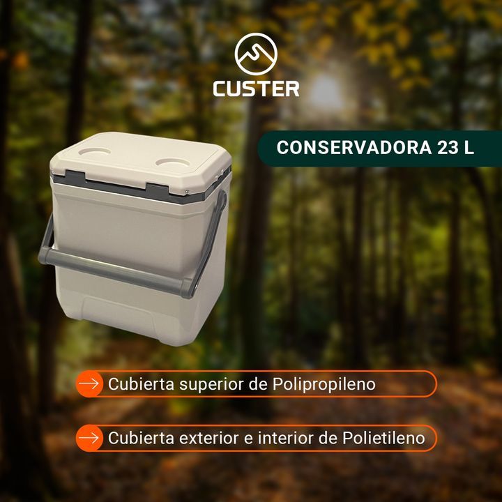 CONSERVADORA PORTATIL CUSTER 23 LITROS. Caracteristicas. Linea Premium Custer- Cierre hermetico que Mantiene frescos los alimentos y bebidas- Superficie plastica con textura que facilita el agarre- Asa rebatible con Grip ergonomico- Ideal camping- playa o salida de pesca- Posavasos. Dimensiones. LAR...