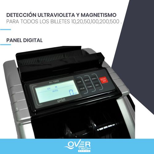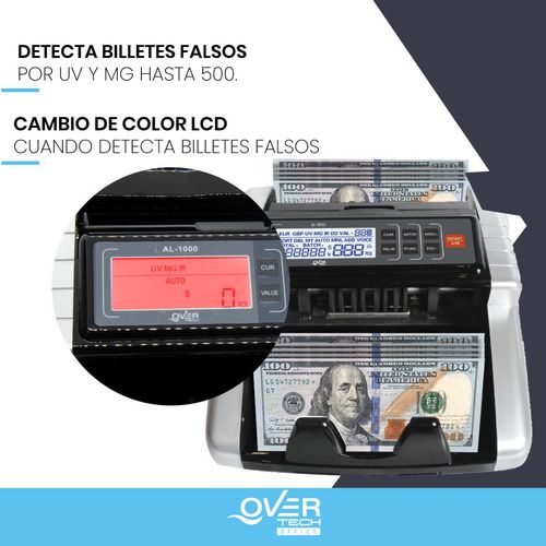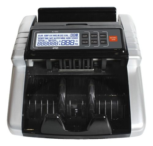 MAQUINA CONTADORA DE BILLETES AL-1000 Brinda velocidad y precisión para tu negocio - Detección Billetes Falsos Por LUZ UV y MAGNETISMO - Funciona con DOLARES; PESOS; REALES Y OTRAS MONEDAS. - Acepta la GENERACION ACTUAL DE BILLETES. CARACTERISTICAS • Inicio automático • DETECTA BILLETES FALSOS de 10...
