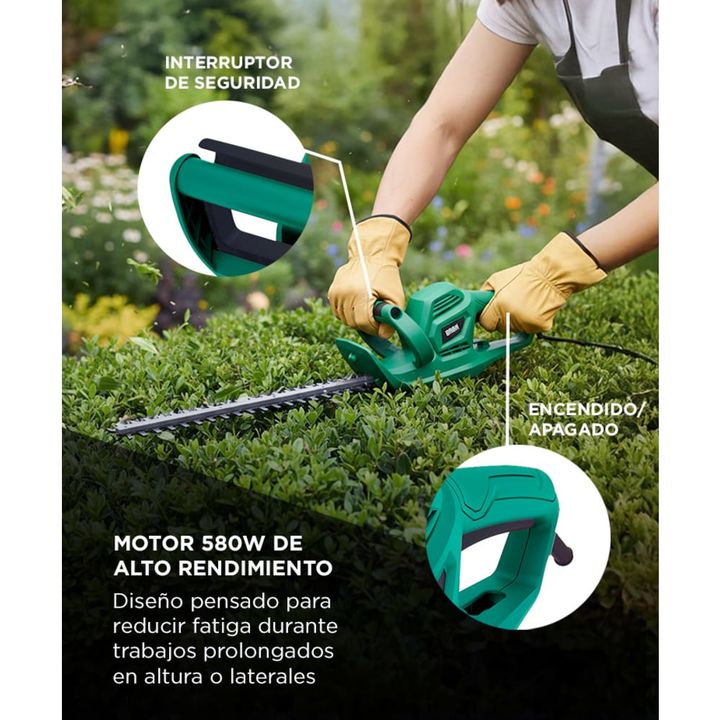 Potencia constante para un corte eficiente El cortacerco Bron de quinientos ochenta watts ofrece una potencia confiable para trabajar en cercos medianos y altos con precisión. Su hoja de acero templado garantiza cortes limpios incluso en ramas más firmes. Diseñado para acompañar tareas de jardinería...